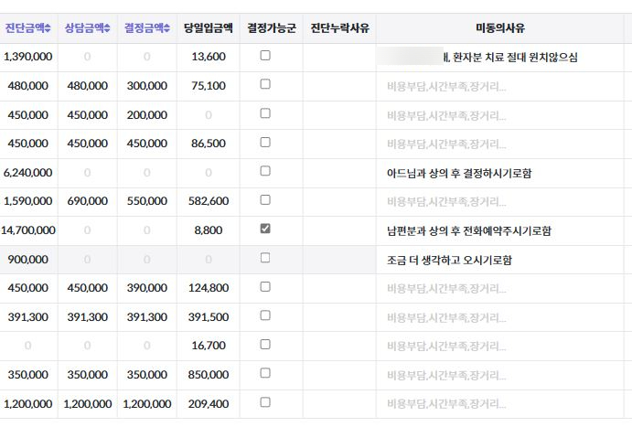 진단금액과 상담금액 결정금액이 그리고 미동의사유등이 따로 관리되고 있지 않은 치과라면 냉정하고 이성적으로 생각해보셔야 합니다.