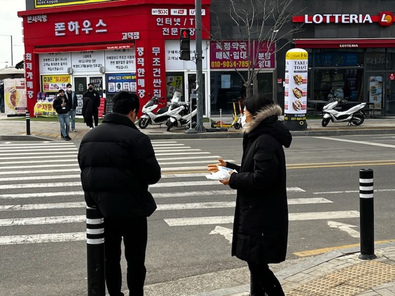 외부 홍보물로 마케팅을 하는 모습